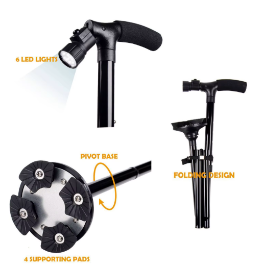 El Bastón Plegable MAGIC PRO, te devuelve la confianza: estable, seguro y con luz LED integrada para guiarte en la oscuridad.