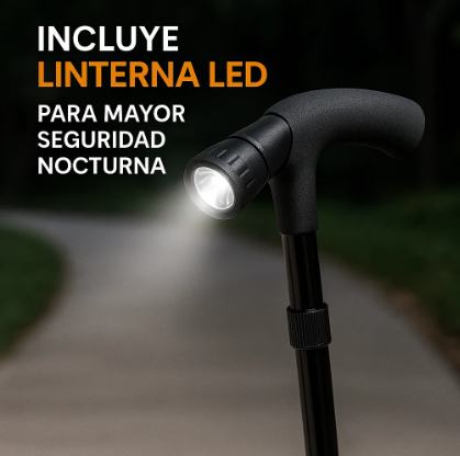 Ofrece apoyo estable, mango ergonómico y luz LED para mayor tranquilidad en la noche.